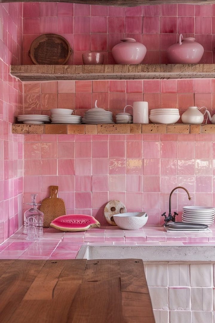 And back to what I was saying earlier about how the shade isn’t inherently evil…in the two spaces below, the pink is softened by variation, warmth, and lived-in texture, which makes it feel naturally generous and cozy.