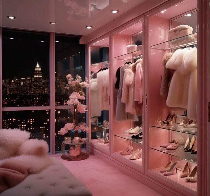 This room, for example, uses Dictator Pink as atmosphere rather than accent. Glossy and perfectly ordered, it turns softness into a controlled fantasy where comfort is ultra-curated and hyper-feminine luxury.